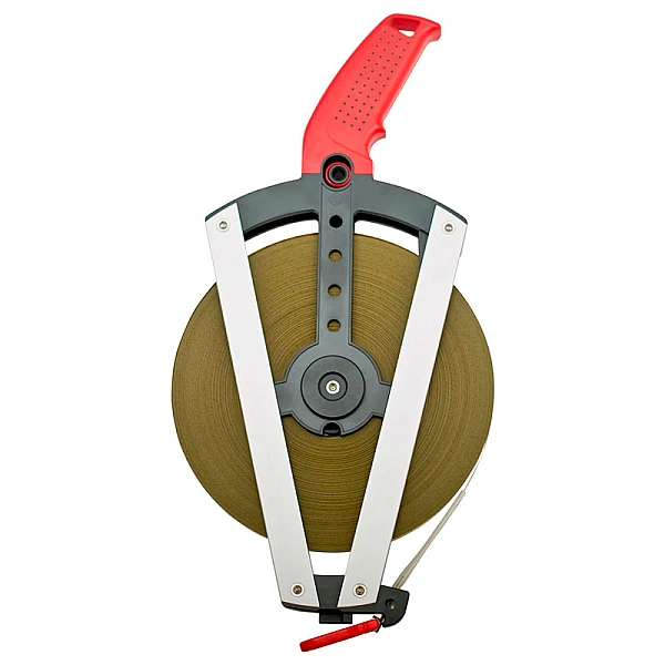 Лента измерительной рулетки BMI ERGOLINE 100 M длиной 100 метров производится из высокоуглеродистой стали высокой прочности. Поверх полотна наносится тонкий слой полиамида, исключающий истирание ленты. Сверху по антикоррозионному покрытию наносится измерительная шкала черного цвета с точность 1 мм.