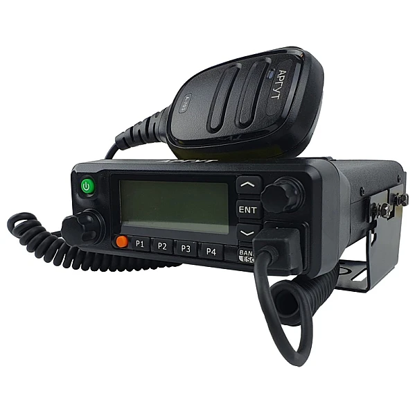 Радиостанция может быть установлена в транспортном средстве в любом удобном месте, для этого в комплекте имеется металлический кронштейн и набор винтов.