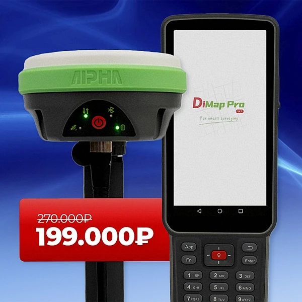 Операционная система Android 11 и высокопроизводительный 8-ядерный процессор обеспечивают возможность использования всего функционала полевого программного обеспечения DiMap Pro, включая работу с CAD-чертежами. При этом, Alpha B55 сохраняет компактные размеры и удобно размещается в транспортировочном кейсе приёмника.