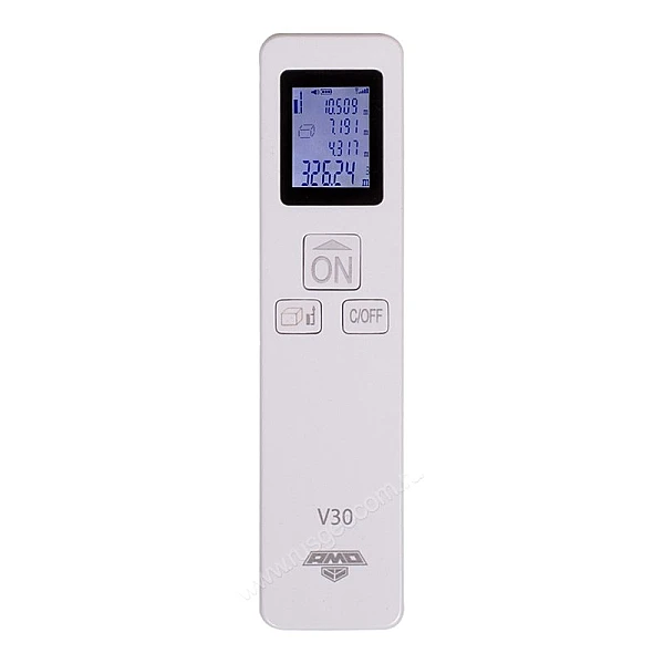 Лазерный дальномер AMO V30 - с широким диапазоном измерений от 3 мм до 35 м и точностью до ±3 мм. Функция подсветки дисплея позволяет использовать прибор в условиях слабого освещения, а для экономии заряда батареи предусмотрено автоматическое отключение устройства через 45 с режима ожидания. Универсальная возможность вычисления в 3 единицах измерения: метрах, футах и дюймах позволяет работать с прибором в различных метрических системах.