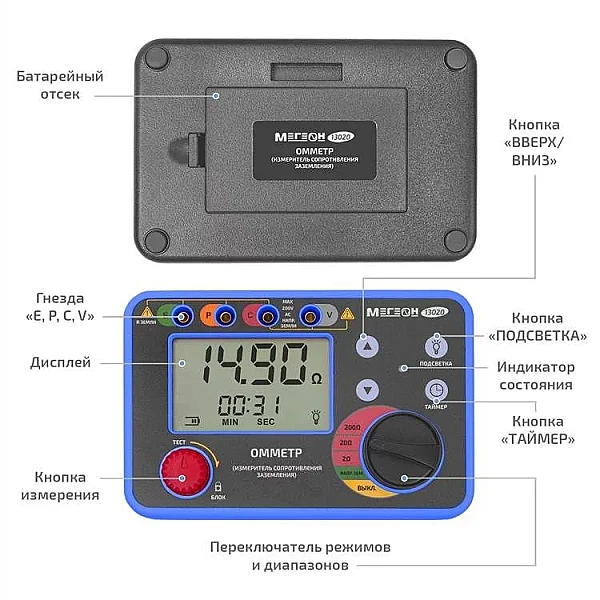 Купить Омметр (измеритель сопротивления заземления) МЕГЕОН 13020 в Новосибирске легко — просто позвоните по телефону: 8-800-551-11-01