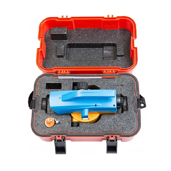 Прибор поставляется в прочном пластиковом кейсе в комплекте с нитяным отвесом и юстировочными инструментами.