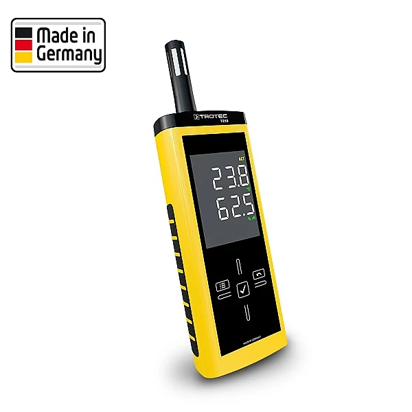 Этот высококачественный измерительный прибор немецкого производства идеально подходит для контроля микроклимата жилых, офисных, производственных и складских помещений. Прецизионные датчики T210 защищены от пыли и грязи металлическим сетчатым фильтром внутри измерительного зонда устройства и позволяют быстро и точно определять температуру воздуха и точки росы, а также относительную, абсолютную и удельную влажность воздуха. Значения температуры и влажности одновременно отображаются на хорошо читаемом цветном дисплее T210 за специальным стеклом Blanview, что позволяет отображать измеренные значения с высокой контрастностью даже при солнечном свете. Для прямого анализа измеренных данных доступны функции минимума, максимума и среднего значения. Кроме того, текущее измеренное значение может быть записано с помощью функции удержания.